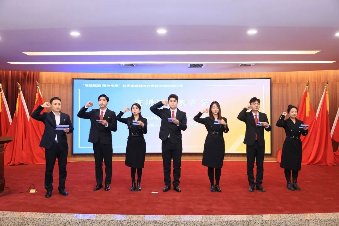 為大力弘揚(yáng)科學(xué)家精神,彰顯集團(tuán)科技創(chuàng)新國家隊(duì)使命擔(dān)當(dāng),會(huì)議啟動(dòng)“增信賦能 精神傳承”科學(xué)家精神宣傳教育活動(dòng),李玉鑫為“尚學(xué)揚(yáng)志 焊衛(wèi)匠心”宣講團(tuán)成員頒發(fā)聘書,宣講團(tuán)團(tuán)長雷振帶領(lǐng)哈焊所青年代表進(jìn)行宣誓。